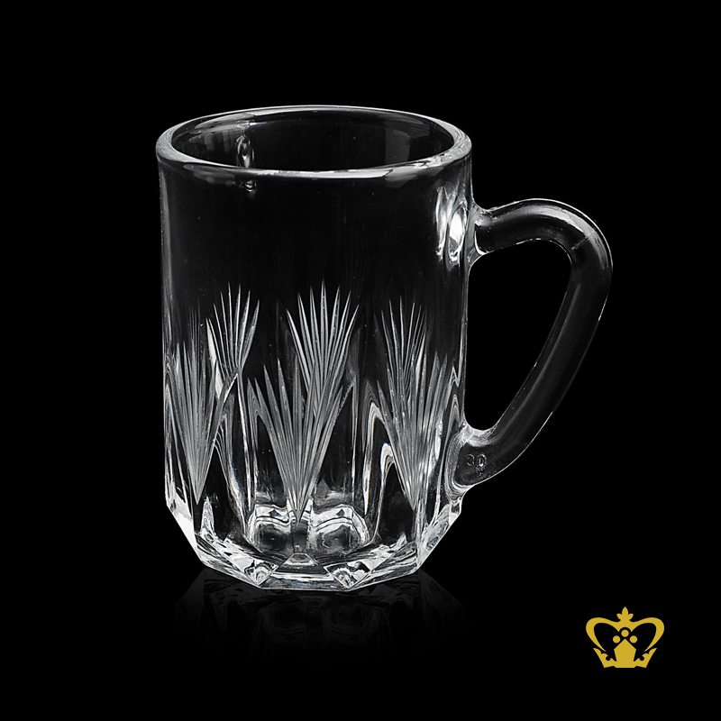 Treat your loved ones to sparkling crystal cups by Crystal Gallery. Crafted in lead crystal with our signature traditional and contemporary cutting patterns such as Kay, Pinwheel, Sapolic, Taj Mehrab, Star Jalli, Stuart, Aristocrat, etc. Crystal Gallery's glassware collection is the epitome of strong craftsmanship. Whether purchasing for yourself or someone else, our in-house engraving services now make it possible to personalize your Tea cups bar glasses, decanter, stemware, vases, bowls and other gifts like never before. Our engraved bar glasses are created using the premiere method of engraving, which produces an elegant and permanent etch on the glass. Our personalized custom engraving options are Icon or Logo with text - ideal gift for any occasion, life event, religious celebration, professional award, personal accomplishment, hobby, interest or lifestyle., One Character Monogram, Two Character Monogram, Three character monogram yet sleek way to personalize stemware, barware, bar glass and makes a great housewarming or wedding or anniversary gift.
