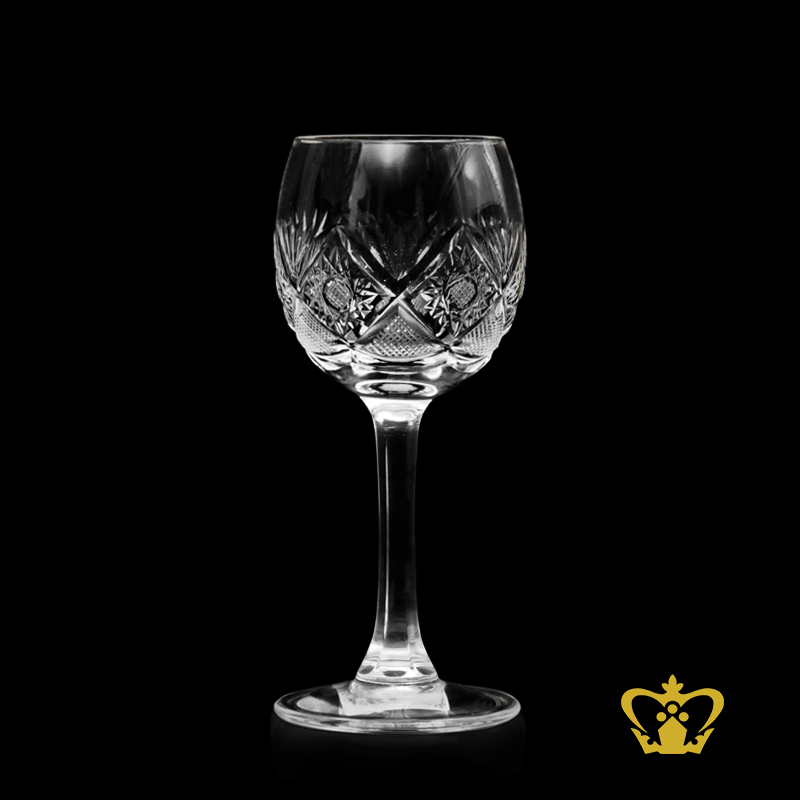 Attractive crystal sherry glass with classic hand carved intense exquisite pattern 4 oz