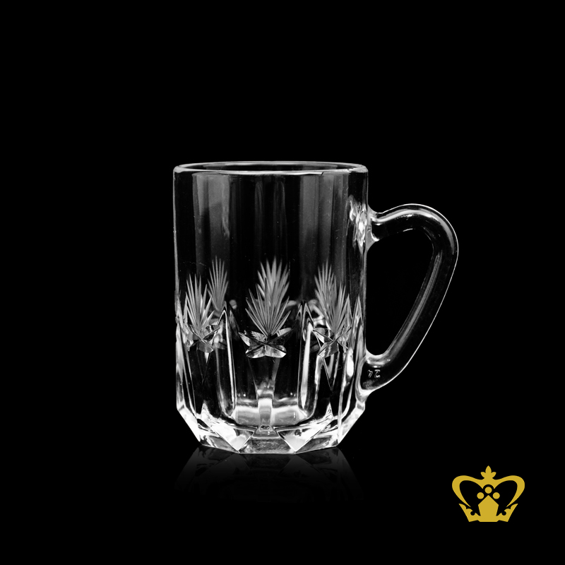 Treat your loved ones to sparkling crystal cups by Crystal Gallery. Crafted in lead crystal with our signature traditional and contemporary cutting patterns such as Kay, Pinwheel, Sapolic, Taj Mehrab, Star Jalli, Stuart, Aristocrat, etc. Crystal Gallery's glassware collection is the epitome of strong craftsmanship. Whether purchasing for yourself or someone else, our in-house engraving services now make it possible to personalize your Tea cups bar glasses, decanter, stemware, vases, bowls and other gifts like never before. Our engraved bar glasses are created using the premiere method of engraving, which produces an elegant and permanent etch on the glass. Our personalized custom engraving options are Icon or Logo with text - ideal gift for any occasion, life event, religious celebration, professional award, personal accomplishment, hobby, interest or lifestyle., One Character Monogram, Two Character Monogram, Three character monogram yet sleek way to personalize stemware, barware, bar glass and makes a great housewarming or wedding or anniversary gift.