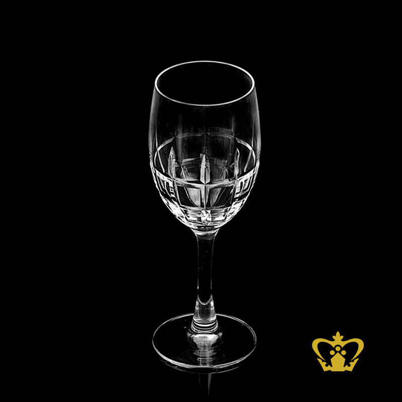 This elegant wine glass is handcrafted with exquisite Square Line patterns. Surprise a special wine-lover with a personalised wine glass. Our signature traditional and contemporary handcrafted cutting patterns such as Kay, Pinwheel, Sapolic, Taj Mehrab, Star Jalli, Stuart, Aristocrat, etc and our wide range of shapes and designs are suited to all your wine preferences. Crystal Gallery expert craftsmanship will ensure that you can enjoy fine wines in our luxury crystal white and red wine glasses. Your favorite chilled wines, you're sure to find the perfect wine glass with us as a treat for yourself or for someone special. Whether purchasing for yourself or someone else, our in-house engraving services now make it possible to personalize your wine glass or any bar glasses, decanter, stemware, vases, bowls and other gifts like never before. You can customize wine glass with a message engraved with your text, add a name or include a date, for a keepsake present that they can use for years to come. Our personalized custom engraving options on wine glasses having Icon or Logo with text, One Character Monogram, Two Character Monogram, Three character monogram etc. Say it engraved with our selection of personalised wine glasses engraved with your very own message, great for celebrating birthday's, anniversaries and weddings.