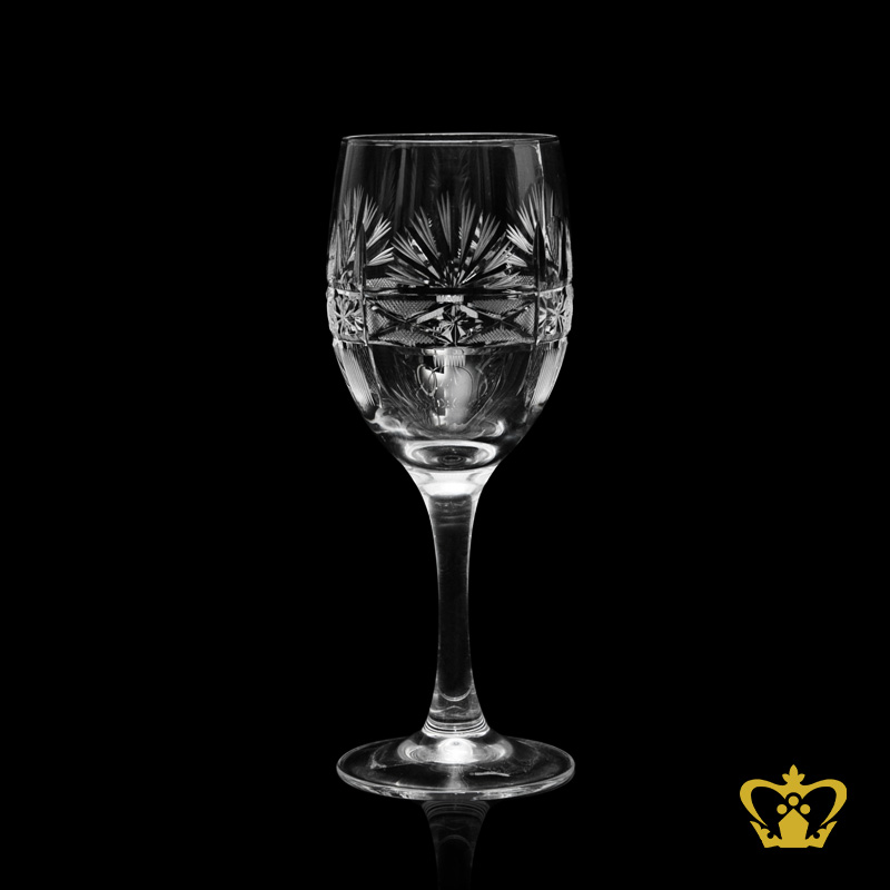Treat your home bar or loved ones to sparkling crystal barware by Crystal Gallery. Crafted in lead crystal with our signature traditional and contemporary cutting patterns such as Kay, Pinwheel, Sapolic, Taj Mehrab, Star Jalli, Stuart, Aristocrat, etc. Crystal Gallery's glassware collection is the epitome of strong craftsmanship. Whether purchasing for yourself or someone else, our in-house engraving services now make it possible to personalize your bar glasses, decanter, stemware, vases, bowls and other gifts like never before. Our engraved bar glasses are created using the premiere method of engraving, which produces an elegant and permanent etch on the glass. Our personalized custom engraving options are Icon or Logo with text - ideal gift for any occasion, life event, religious celebration, professional award, personal accomplishment, hobby, interest or lifestyle., One Character Monogram, Two Character Monogram, Three character monogram yet sleek way to personalize stemware, barware, bar glass and makes a great housewarming or wedding or anniversary gift.