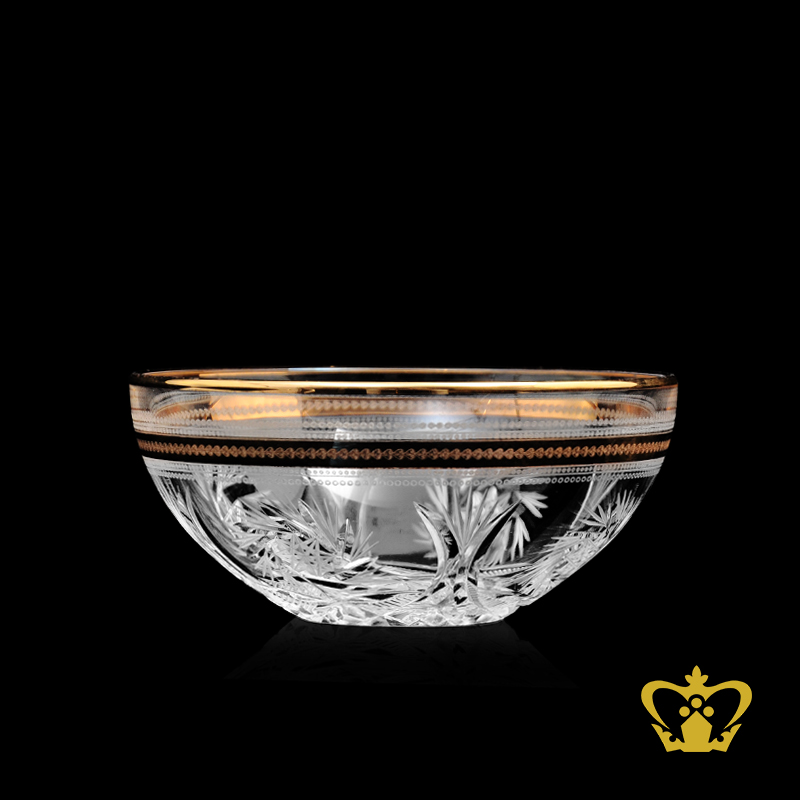Elegant modish crystal mini bowl handcrafted with golden rim and intense cuts an alluring house warming gift souvenir