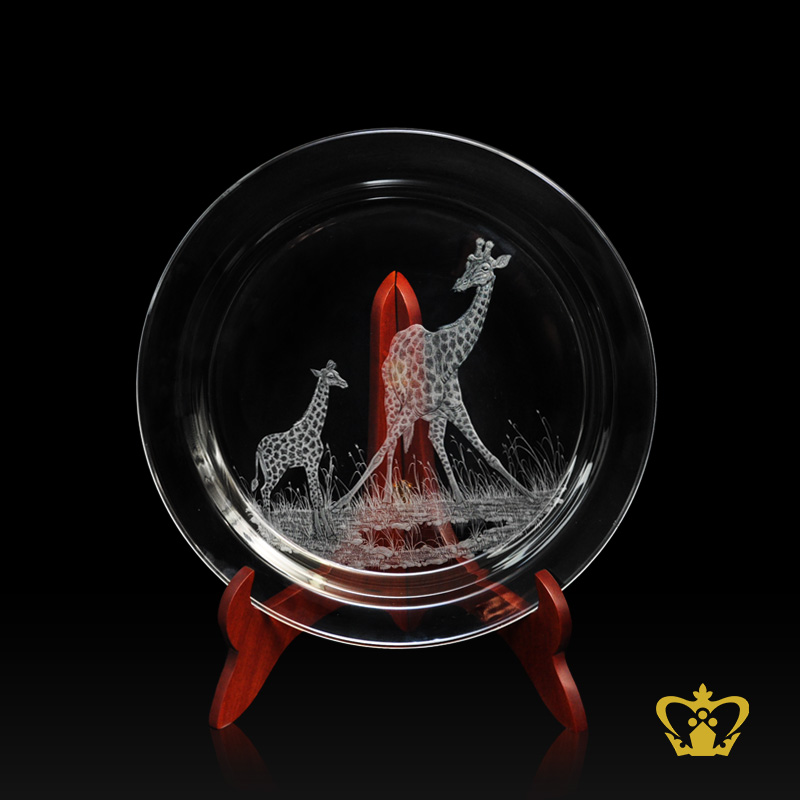 Crystal-center-plate-engraved-with-giraffe-customized-text-engraving-logo Product Product Product Product