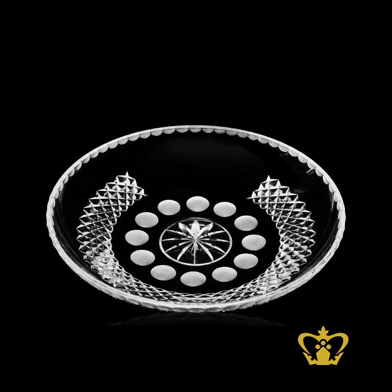 Crystal centerplate with lovely handcrafted intense diamond land decorative pattern cuts