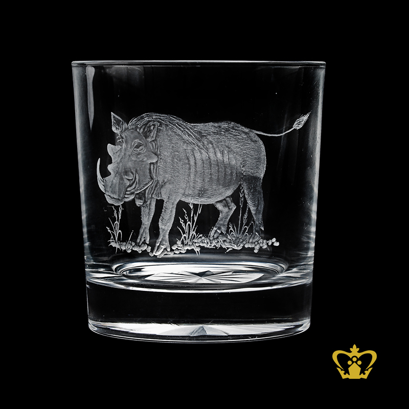 Wild animal warthog hand engraved rare collection wildlife crystal whisky glass