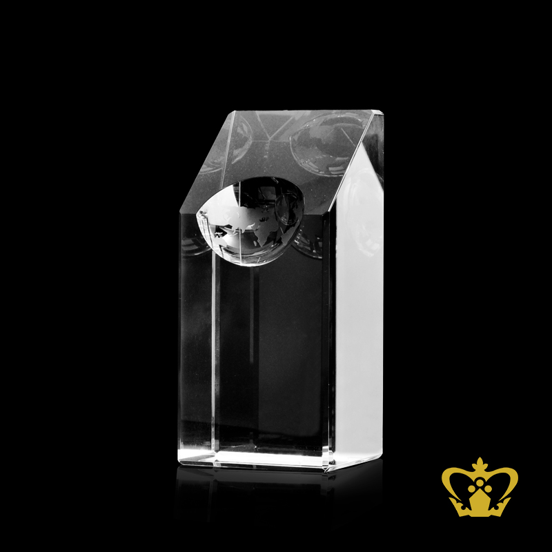 Cuboid crystal stylish handcrafted trophy with globe carved on slop top