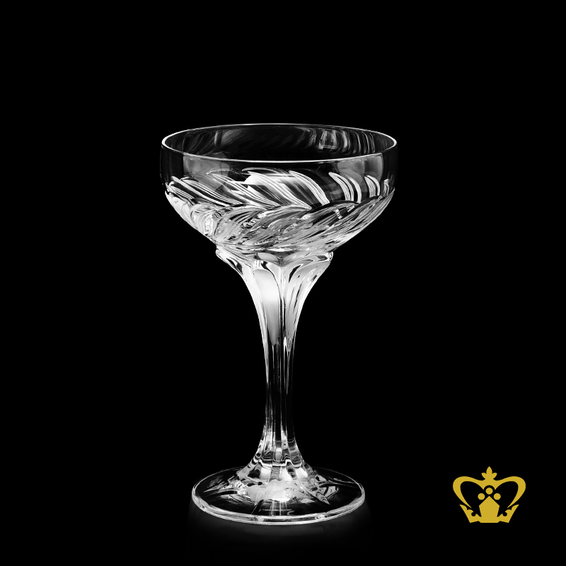 Handcrafted-crystal-champagne-saucer-with-leaf-cuts-and-elegant-unique-shaped-stem Product Product Product