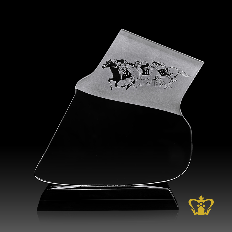Personalized-Crystal-Horse-Hoof-Trophy-With-Black-Base-Customized-Logo-Text Product Product Product