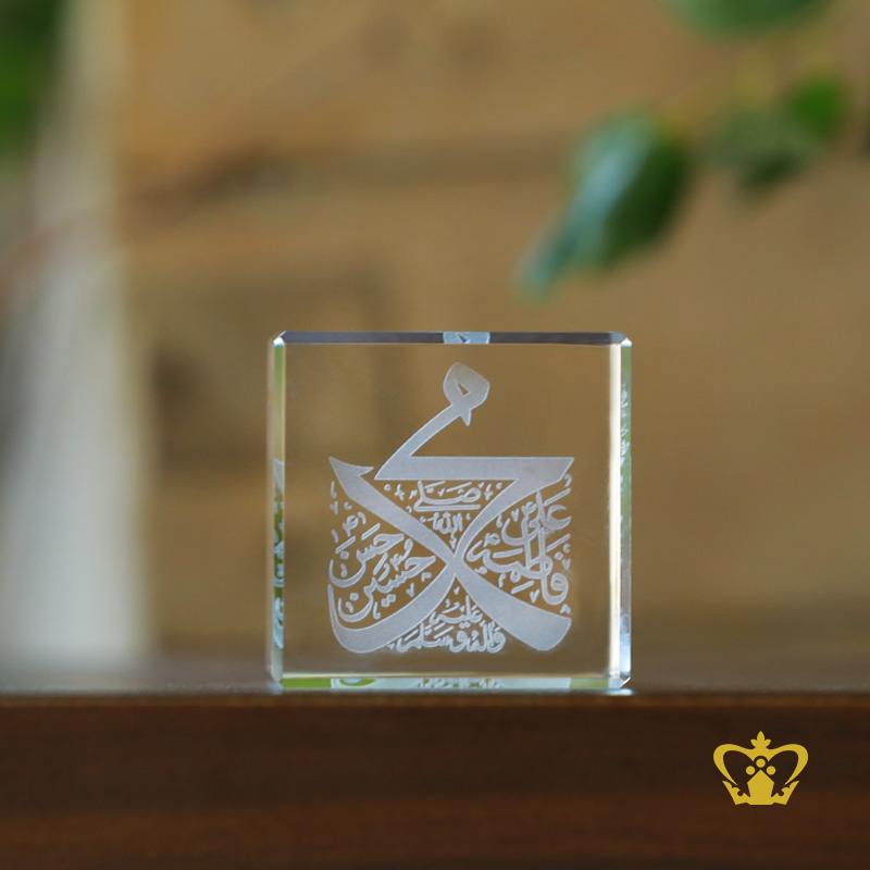 Ramadan-Souvenir-Islamic-Occasions-Eid-Gift-Religious-Pure-Panjtan-Laser-Engraved-Customized-Crystal-Cube-Arabic-Word-Calligraphy Product Product Product Product Product
