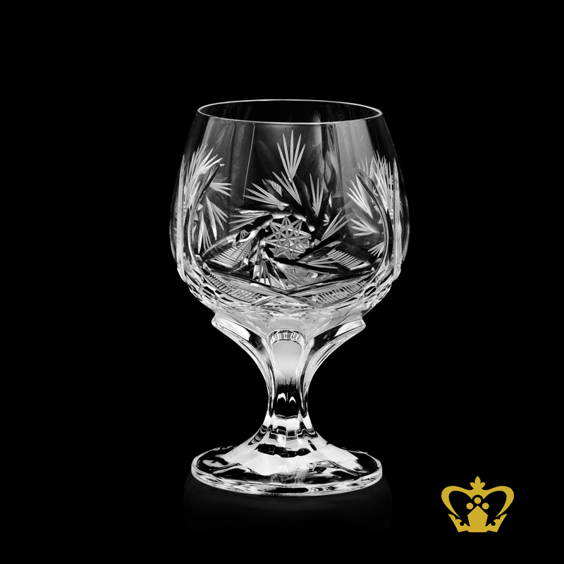 Crystal Gallery having stunning range of hand crafted crystal brandy snifter glasses those are sure to be the perfect accompaniment to a party with friends, or a celebration with family. Our signature traditional and contemporary cutting patterns such as Kay, Pinwheel, Sapolic, Taj Mehrab, Star Jalli, Stuart, Aristocrat, etc are suited to all your brandy preferences. These timeless designs will be a beautiful addition to your barware collection or make a perfect gift for any brandy lover. Whether purchasing for yourself or someone else, our in-house engraving services now make it possible to personalize your cognac glass or any bar glasses, decanter, stemware, vases, bowls and other gifts like never before. Our personalized custom engraving options having Icon or Logo with text, One Character Monogram, Two Character Monogram, Three character monogram etc. Yet sleek way to personalize brandy snifter glasses or any bar glasses makes a great Father’s day gift, birthday gift, anniversary gift etc. There's no better gift for the man who has it all than a bottle of his favorite spirit and a bar glass personalized just for him. This snifter is perfect for enhancing the flavorful aromas of brandy, but when you personalize it with a special toast, it becomes a must-have bar accessory he'll love forever. These elegant snifter glasses are perfect for enjoying your favorite brandy, whiskey, bourbon, or scotch! We are able to custom engrave these personalized snifter glasses with almost any design you can imagine. For real class, engrave your logo or graphic, leaving a frosted, etched white outcome on the glass.