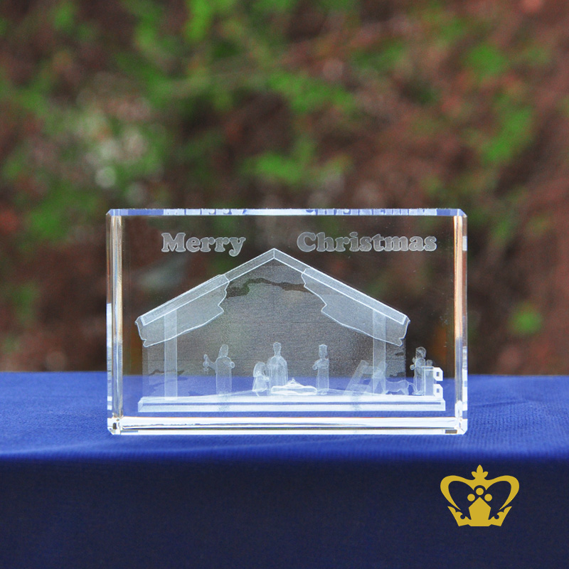 Merry Christmas Crib 3D laser engraved crystal Cube Gift