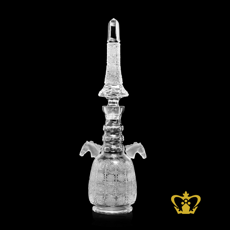 Crystal-whiskey-decanter-vintage-look-with-sparkling-heavy-cuts-twirling-star-and-two-horse-head Product