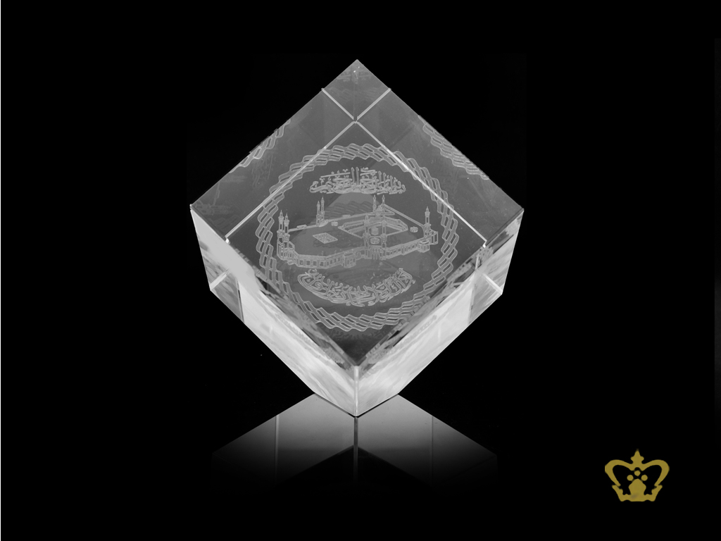 Arabic-Word-Calligraphy-Bismillah-Ir-Rahman-Ir-Rahim-And-La-Ilaha-Illa-Allah-Muhammed-Rasul-Allah-With-Holy-Kaaba-Engraved-Islamic-Occasions-Gift-Crystal-tilted-cube-Customized-Ramadan-Eid-Religious-Souvenir Product Product Product Product