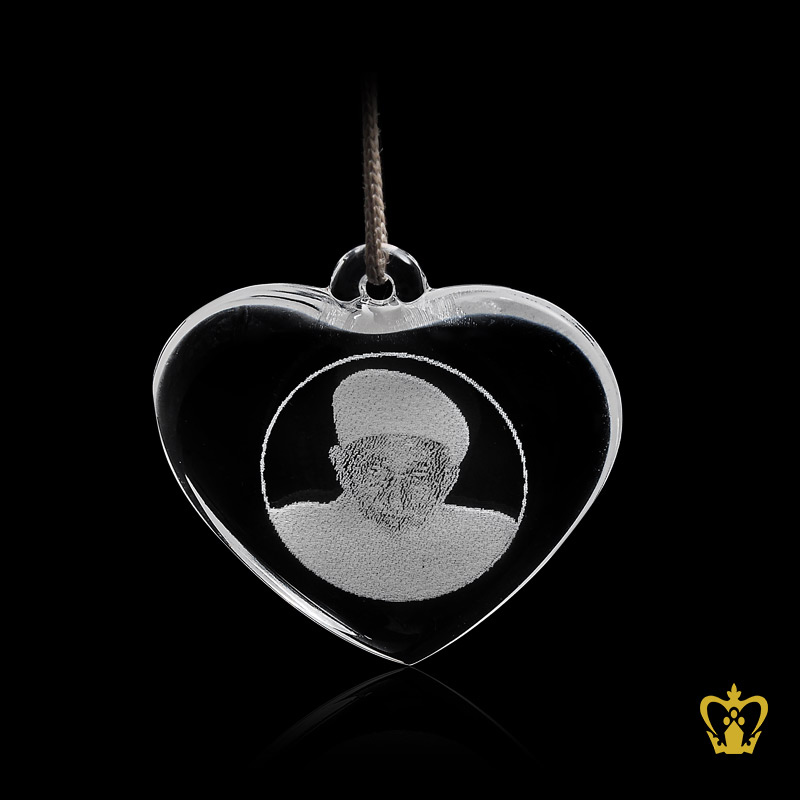 Heart-shape-crystal-pendant-with-2D-laser-engraved-Burhanuddin-Moula-religious-souvenir-gift-Bohra-community Product Product