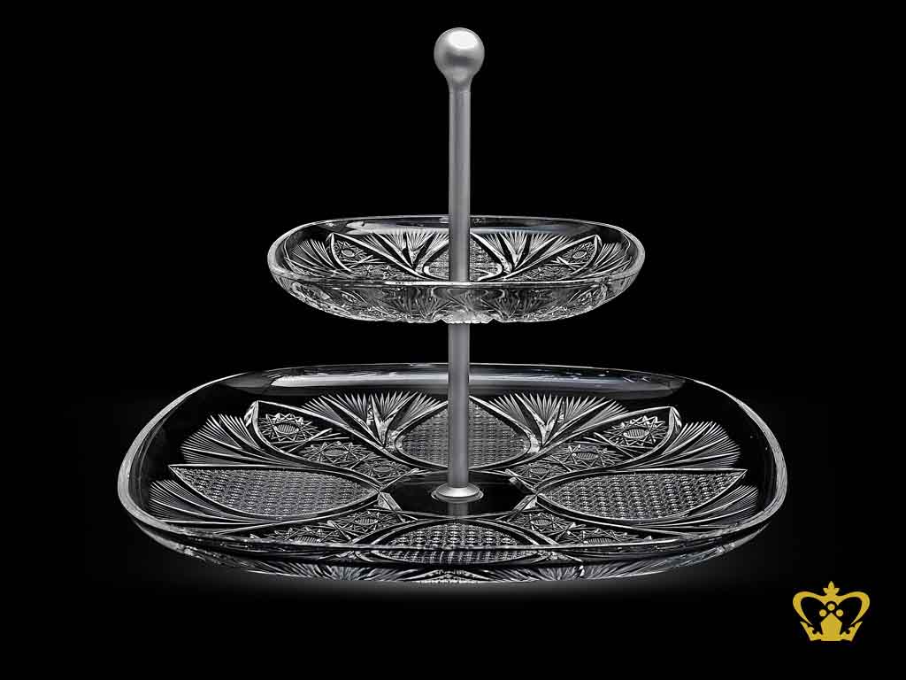 Crystal-2tier-plate-with-unique-handcrafted-intense-star-and-leaf-pattern Product Product Product