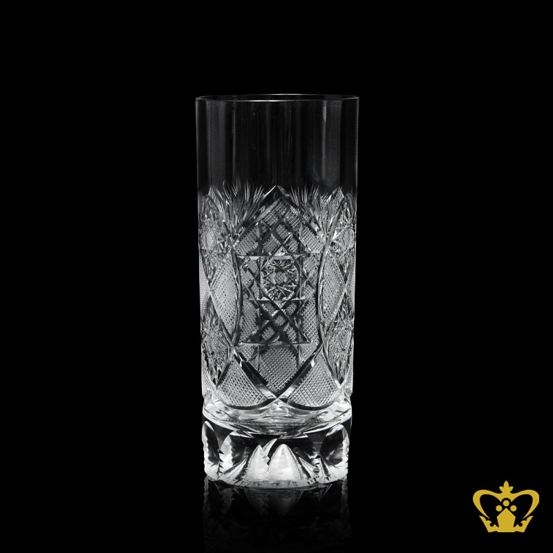 Treat your home bar or loved ones to sparkling crystal barware by Crystal Gallery. Crafted in lead crystal with our signature traditional and contemporary cutting patterns such as Kay, Pinwheel, Sapolic, Taj Mehrab, Star Jalli, Stuart, Aristocrat, etc. Crystal Gallery's glassware collection is the epitome of strong craftsmanship. Whether purchasing for yourself or someone else, our in-house engraving services now make it possible to personalize your bar glasses, decanter, stemware, vases, bowls and other gifts like never before. Our engraved bar glasses are created using the premiere method of engraving, which produces an elegant and permanent etch on the glass. Our personalized custom engraving options are Icon or Logo with text ideal gift for any occasion, life event, religious celebration, professional award, personal accomplishment, hobby, interest or lifestyle., One Character Monogram, Two Character Monogram, Three character monogram yet sleek way to personalize stemware, barware, bar glass and makes a great housewarming or wedding or anniversary gift.