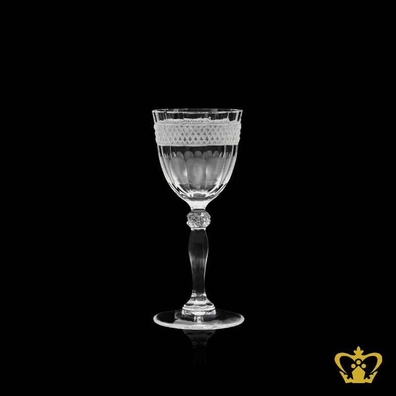 Handcrafted wine glass vintage style decorated with classic frosted deep pattern cuts elegant unique shaped stem