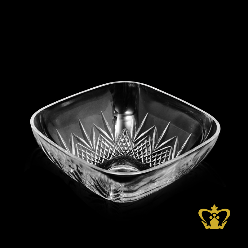 Handcrafted-square-crystal-bowl-with-leaf-pattern-cuts-rising-from-bottom Product Product