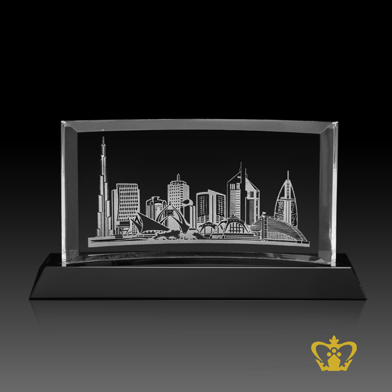 Dubai skyline famous landmark engraving in crystal crescent with black base gift tourist souvenir