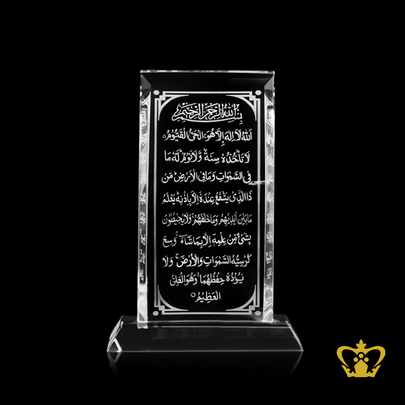 Crystal Plaque Ayat Al Kursi Arabic Quran Verse calligraphy Engraved Islamic Occasion Gift Holy Ramadan Eid Souvenir