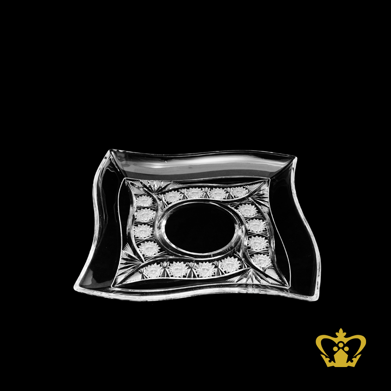 Crystal-wave-tray-handcrafted-with-star-cuts-and-frosted-leaf-pattern Product Product