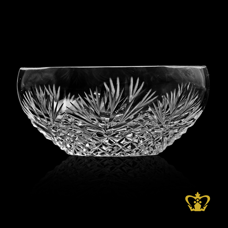 Special-oval-boat-shaped-crystal-candy-dish-nut-bowl-adorned-with-vintage-handcrafted-intense-leaf-and-diamond-cuts- Product Product Product