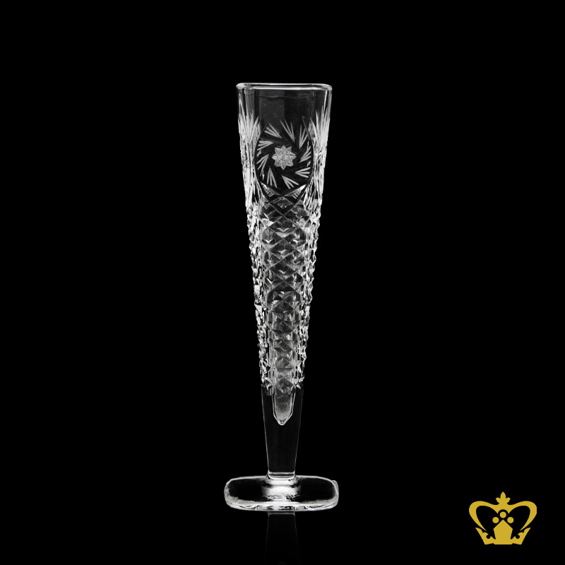 Handcrafted crystal vase with twirling star diamond and leaf pattern cuts