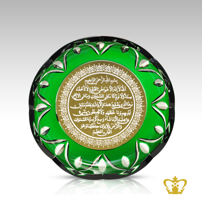 Decorative-Plate-Green-Cystal-Hand-crafted-with-Leaf-cuts-Golden-Arabic-word-calligraphy-Engraved-Ayat-Al-Kursi-Islamic-Souvenir-Eid-Ramadan-Gift Product Product Product Product