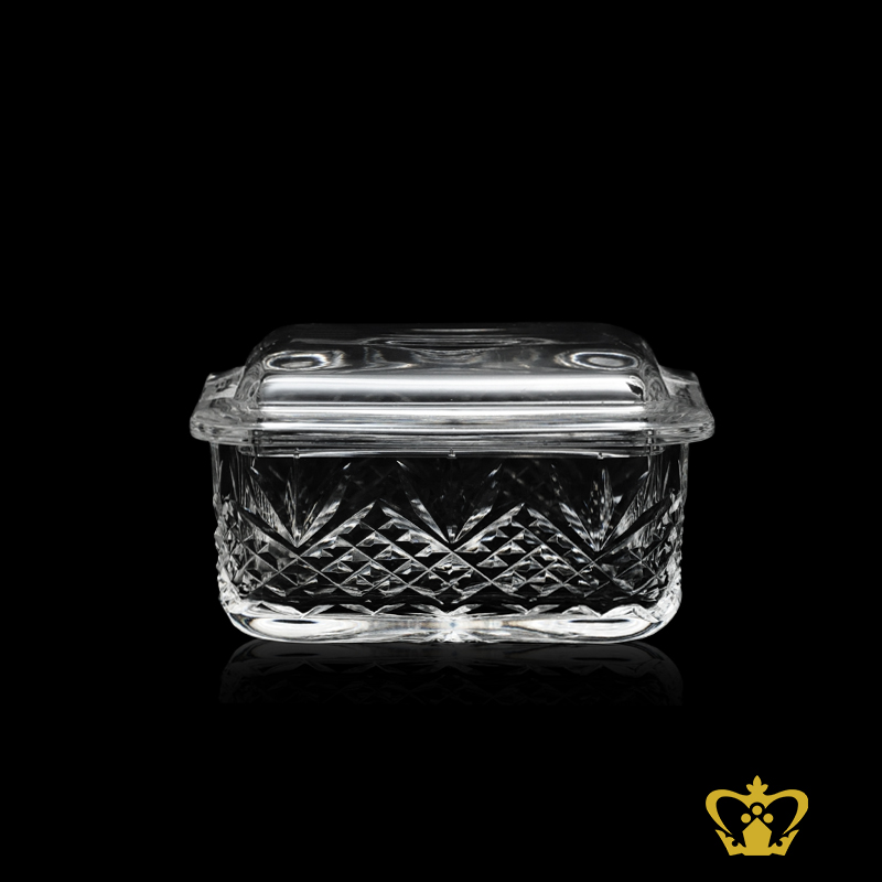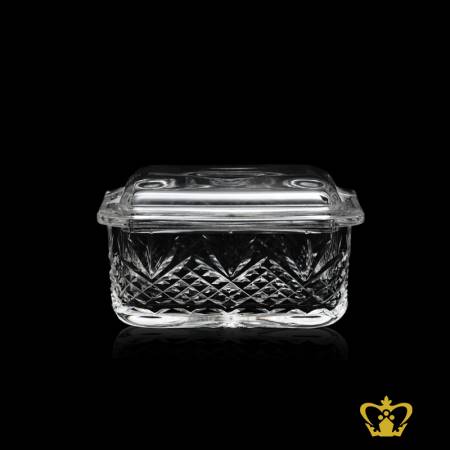 Add a classic touch to breakfast with crystal Butter Dish from crystal gallery. Its dazzling handcrafted fine intense cuts, with curved lid bring a stylish twist to any dining table it is placed on. A brilliant addition to any home it makes a great gift idea for any special occasion.