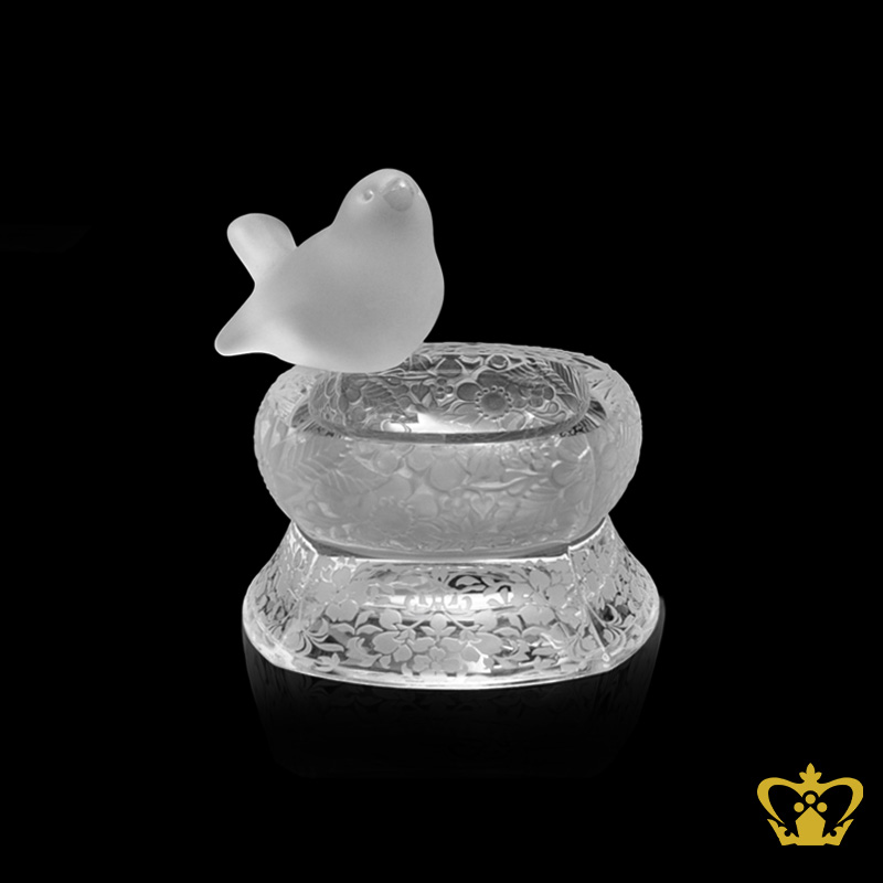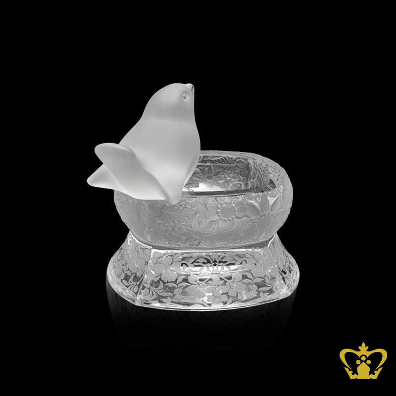 Crystal-Replica-of-Bird-stands-on-a-Crystal-Frosted-Bowl-Customize-Base-Text-Engraving-Logo Product Product Product Product Product Product