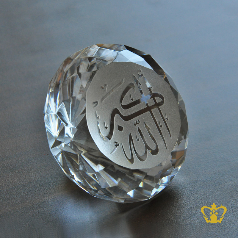 Allahu Akbar Engraved Eid Ramadan Gift Religious Souvenir Islamic Diamond Cut Crystal with Arabic word Calligraphy