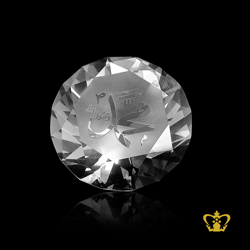 Diamond-Cut-Round-Crystal-Islamic-Souvenir-Laser-Engraved-Arabic-word-calligraphy-Muhammed-Rasul-Allah-Religious-Occasions-Ramadan-Eid-Customized-Gift Product Product Product