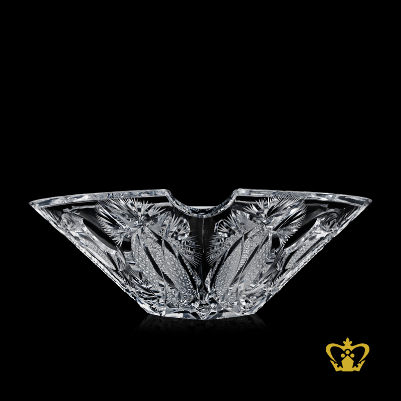 Contemporary three-cornered crystal Bowl enhanced with handcrafted vintage timeless pattern