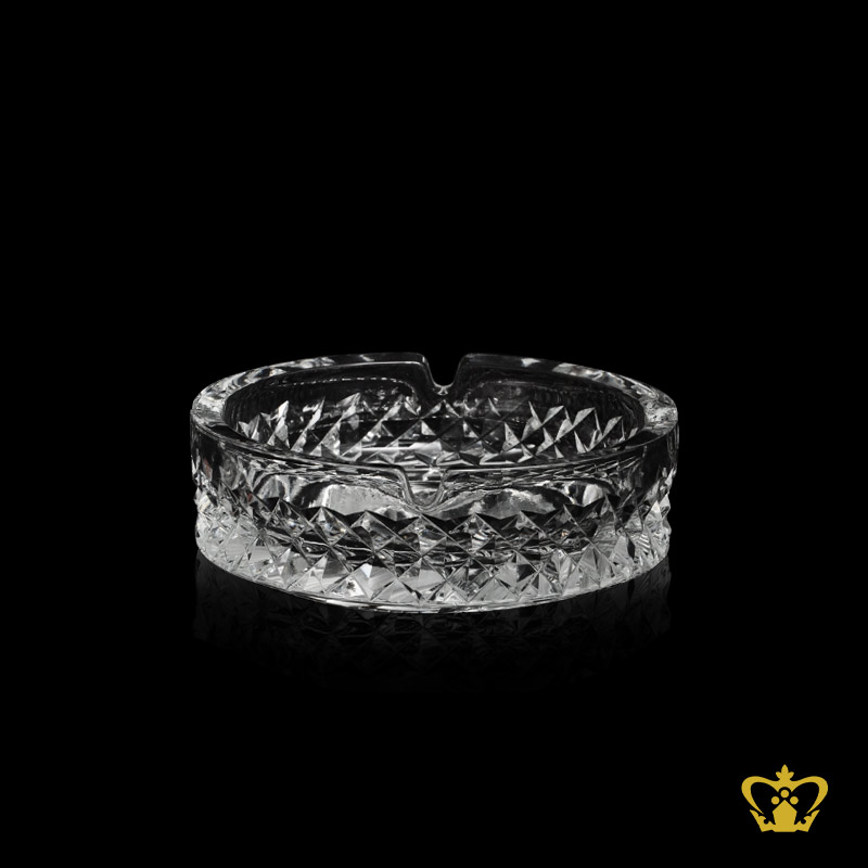 Manufactured artistic crystal ashtray with intricate cuts