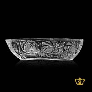 Unique leaf shaped crystal candy dish nut bowl with vintage twirling star pattern hand crafted