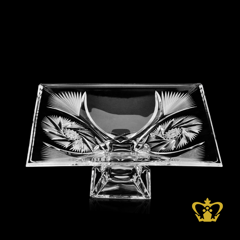 Square-footed-crystal-decorative-bowl-handcrafted-with-twirling-star-cuts-and-frosted-leaf-pattern Product Product
