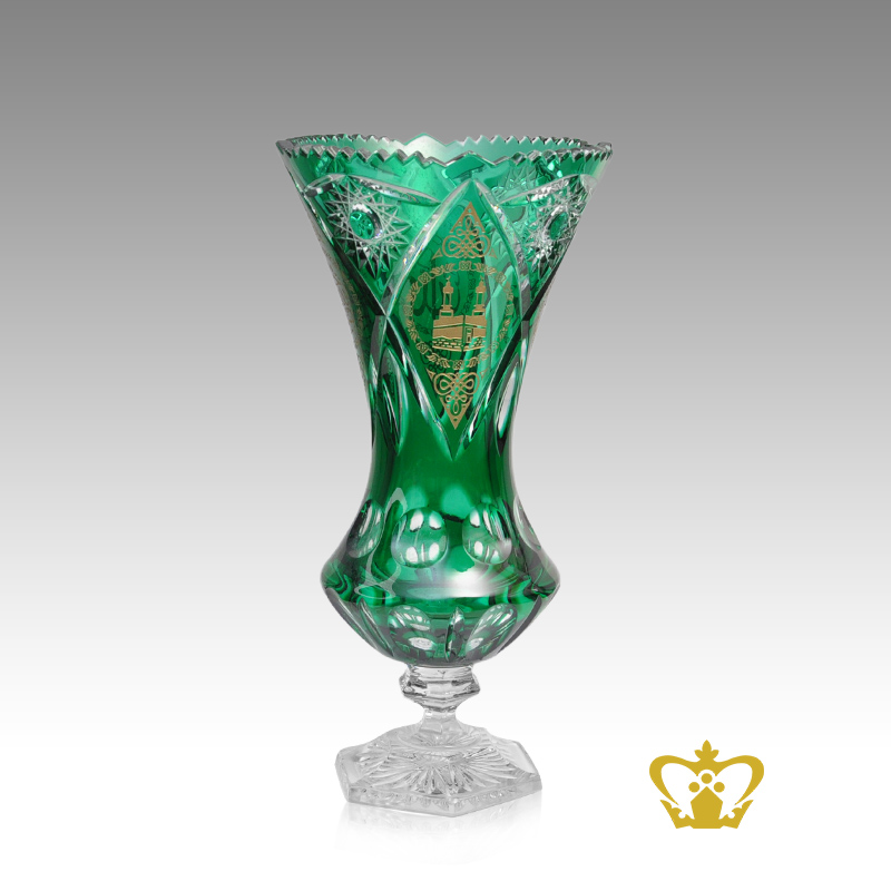 Lovely-footed-handcrafted-green-crystal-vase-with-Islamic-Arabic-golden-word-calligraphy-Allah-engraved-alluring-Ramadan-Eid-souvenir-special-religious-occasions-gift Product Product Product