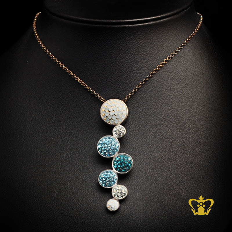 Luxurious aqua blue and clear crystal inlaid bubble pendant sparkling gift for her