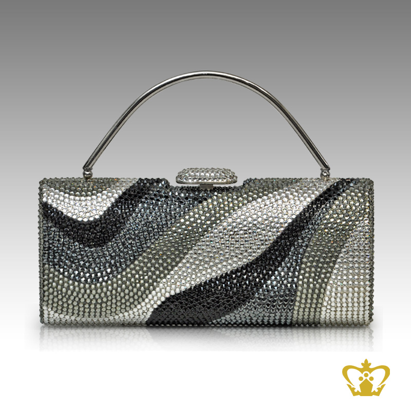 Ladies purse wave shaded embellish with white black and gray crystal diamond gorgeous gift for her