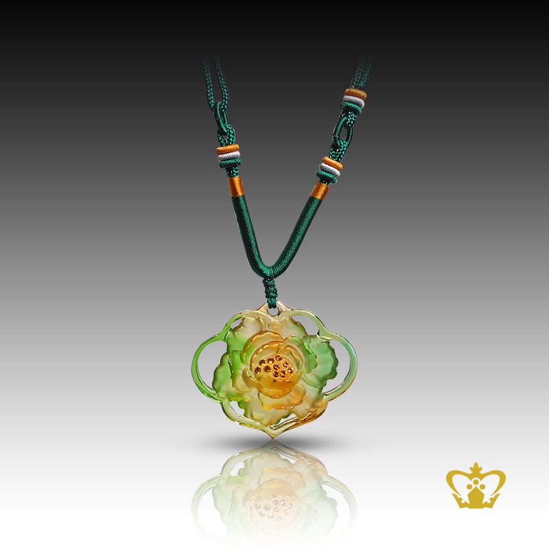 Green-flower-pendant-embellish-with-amber-crystal-stone-elegant-gift-for-her Product Product
