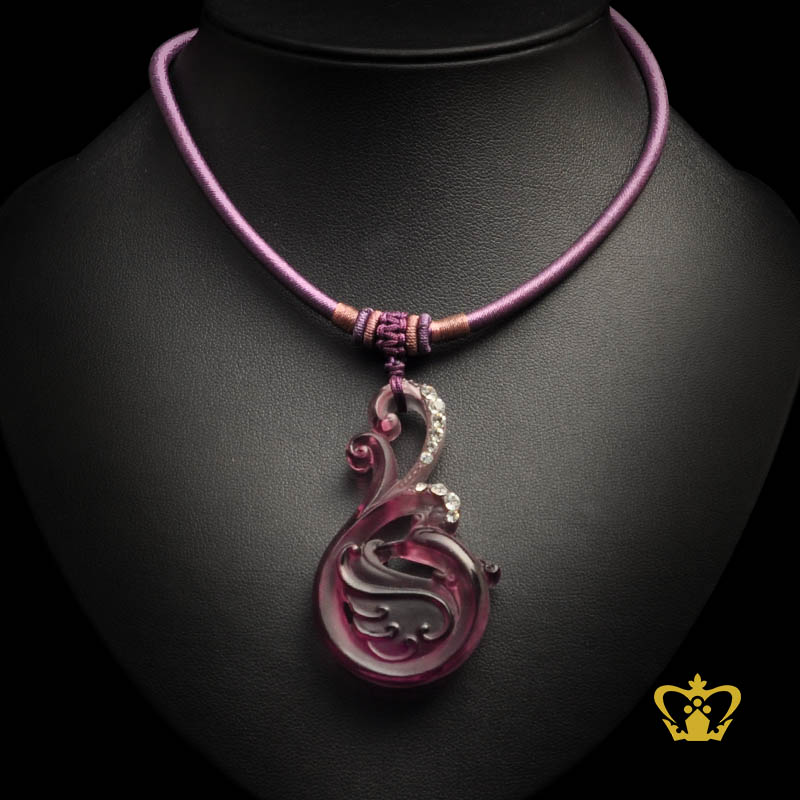 Purple elegant flying phoenix pendent embellish with clear crystal stone exquisite jewelry gift for her