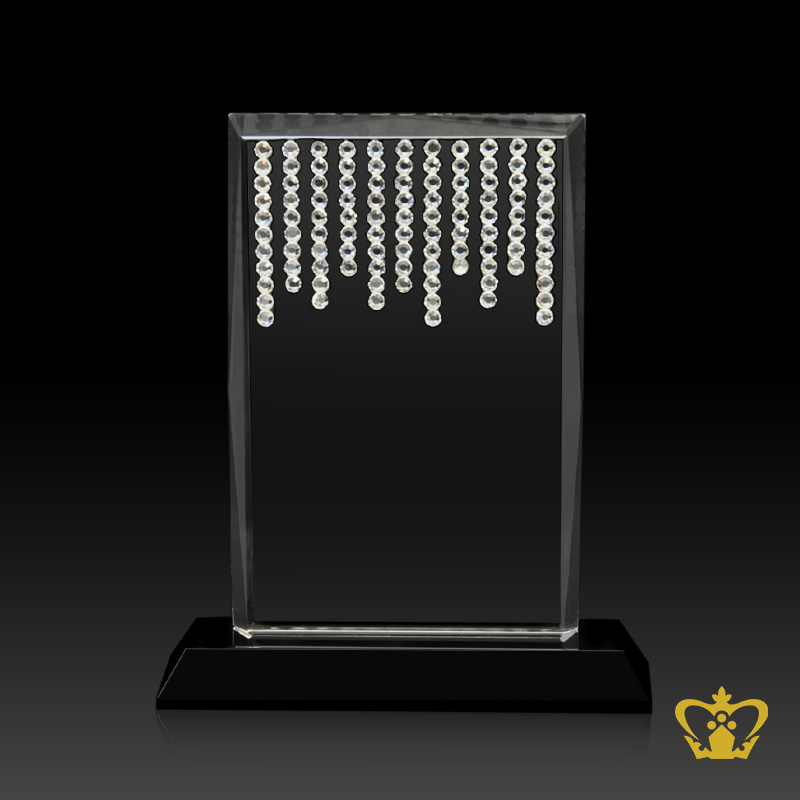 Crystal rectangular plaque trophy with diamond and stand on black base customized logo text