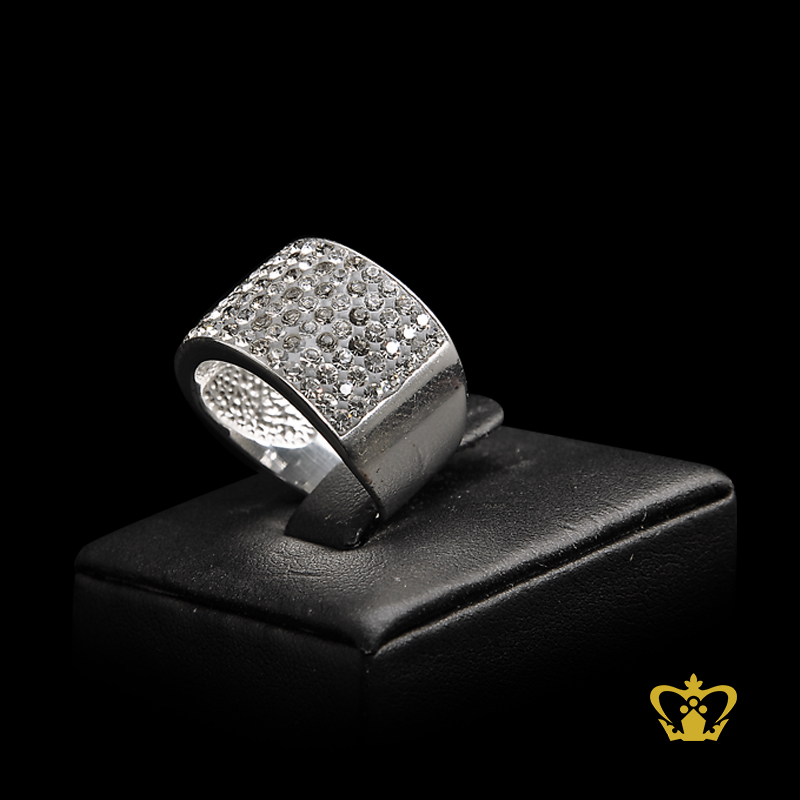 Sparkling exquisite silver ring inlaid with crystal diamonds charming gift for her