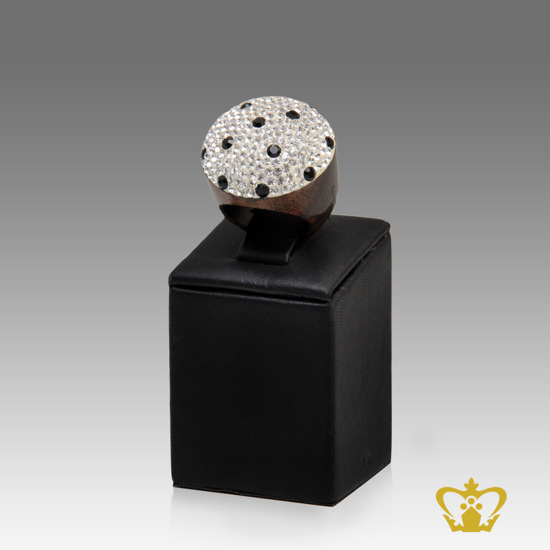 Classy-wooden-ring-embellish-with-black-and-clear-crystal-stone Product Product