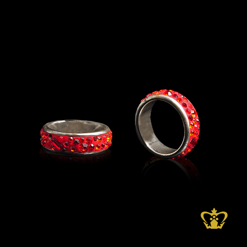 Shiny round silver ring embellish with red crystal diamond elegant beautiful gift for her