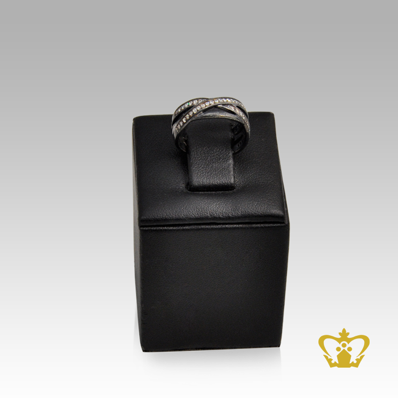 Silver-double-cross-ring-inlaid-with-clear-crystal-diamond-elegant-gift-for-her Product Product