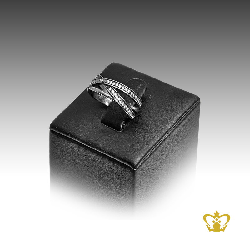 Silver-double-cross-ring-inlaid-with-clear-crystal-diamond-elegant-gift-for-her Product Product