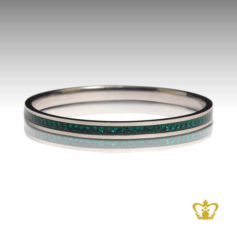 Silver bangle inlaid with green crystal diamond