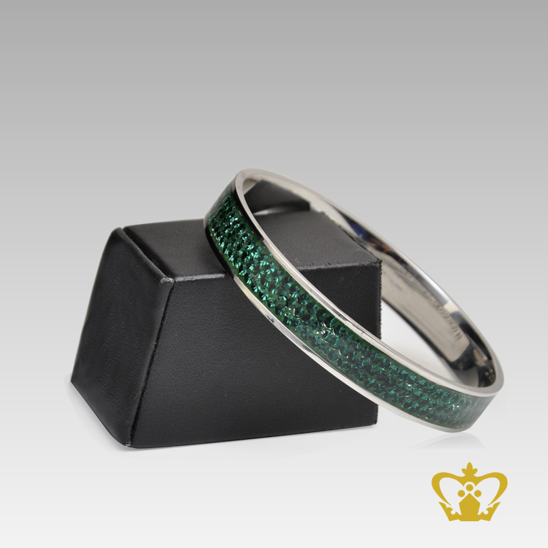 Silver-bangle-inlaid-with-green-crystal-diamond Product Product