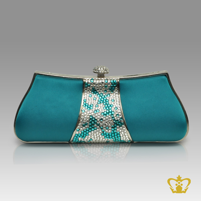 Ladies purse blue color embellished with clear and blue sparkling crystal stone gorgeous gift for her